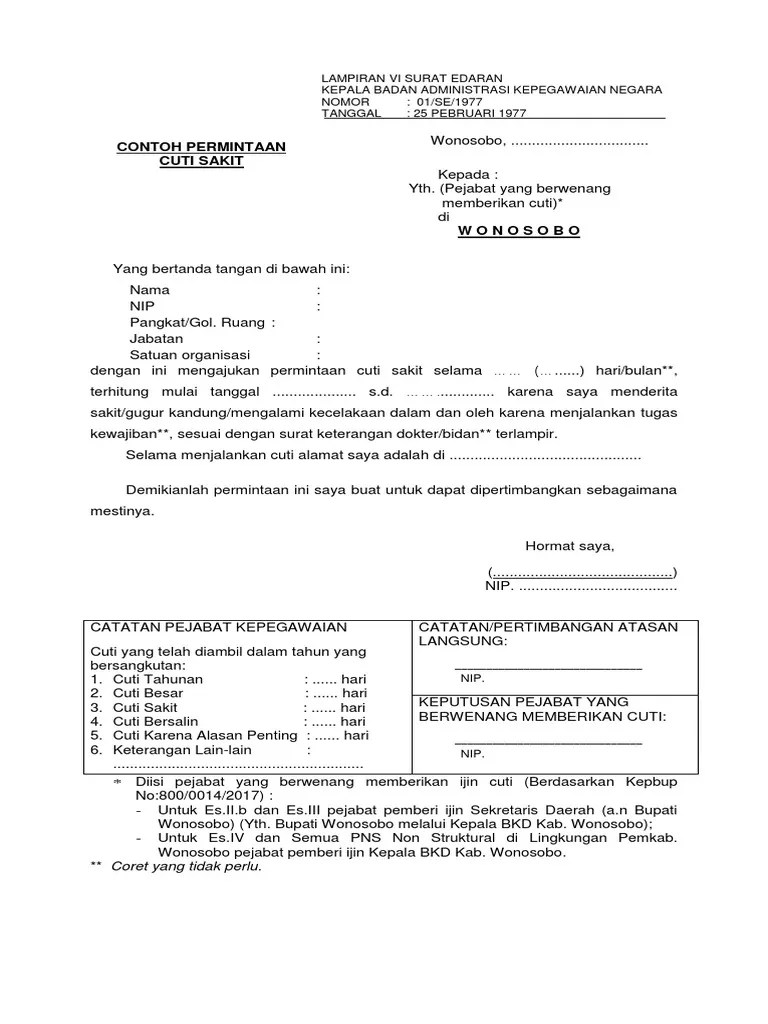 Contoh Format Surat Cuti Pns - 10 Contoh Surat Izin Tidak Masuk Kerja Umum Sakit Pns Dll / Download format format cuti pns terbaru gratis 2016.